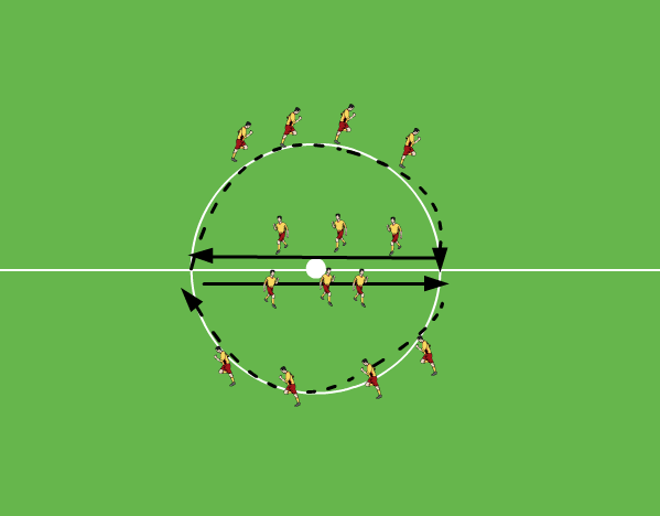 Das Training begann mit Warmlaufen im Mittelkreis.