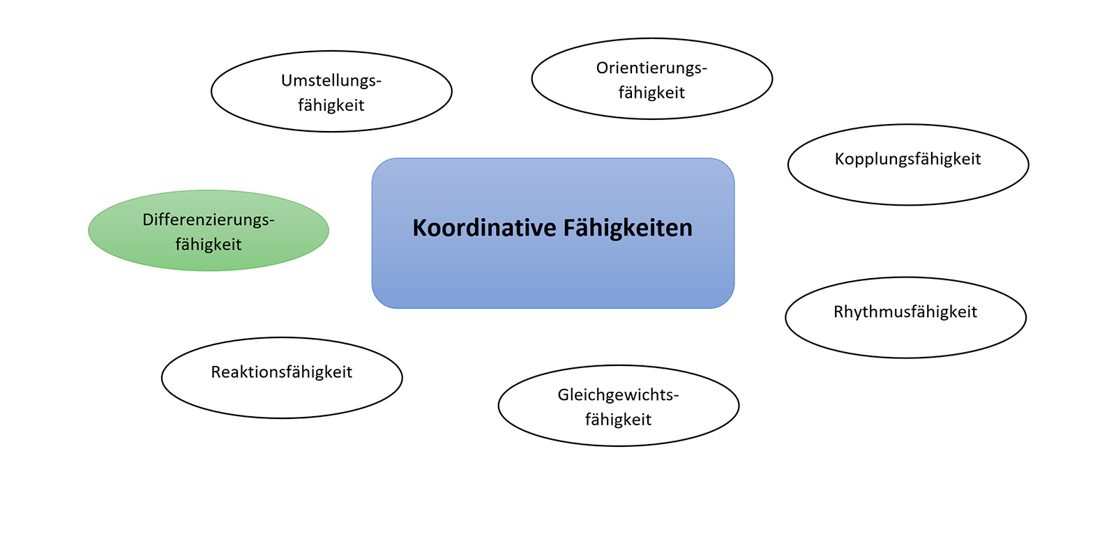 Die Differenzierungsfähigkeit hat das Ziel einzelne Bewegungsabläufe und Teilkörperbewegungen genau abzustimmen – eine große Bewegungsökonomie ist dabei notwendig. Bereits im früh-kindlichen Alter lässt sich diese Fähigkeit gut trainieren, jedoch ist die Differenzierungsfähigkeit mit vorangeschrittenem Alter (nach dem Kinder- und Jugendalter) deutlich schwieriger trainierbar. Die Differenzierungsfähigkeit spiegelt sich vor allem im „Ballgefühl“ (Wie viel Kraft wird benötigt, um einen Fußball eine bestimmte Distanz weit zu spielen) wieder.