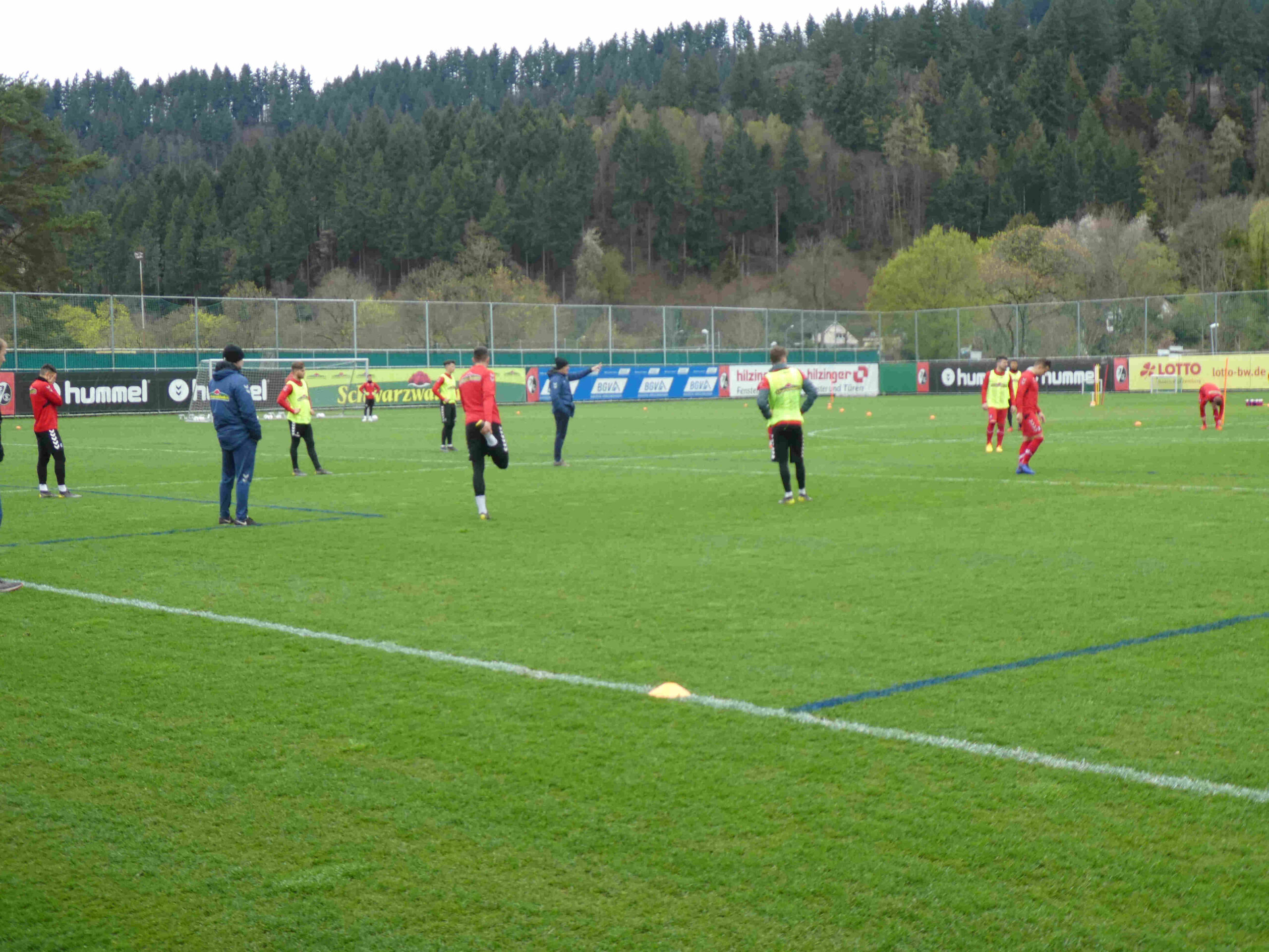Zum Abschluss wurde das Feld auf eine einheitliche Breite gebracht, in dem die Angriffszonen aufgehoben wurden und noch einmal jeweils 10 Minuten im 8 gegen 8 gespielt, wobei Trainer Christian Streich immer wieder auf die zuvor erarbeiteten Schwerpunkte verwies und höchste Intensität, Laufbereitschaft und Konzentration einforderte.