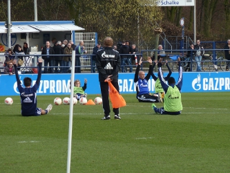 Heute stand mal wieder das Passspiel beim Schalketraining auf dem Programm. Doch bevor der Ball ins Spiel kam wurde sich ausgiebig war gemacht.