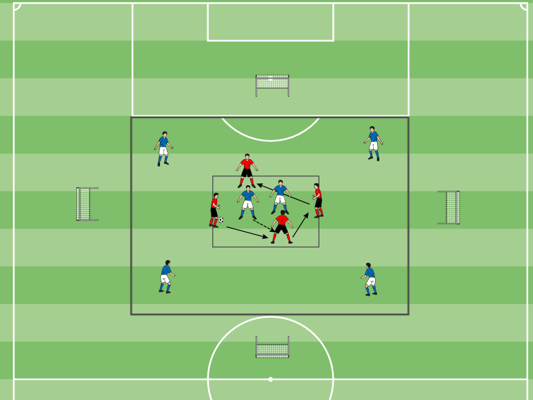 – 4+6 gegen 4 in einer Spielfeldhälfte