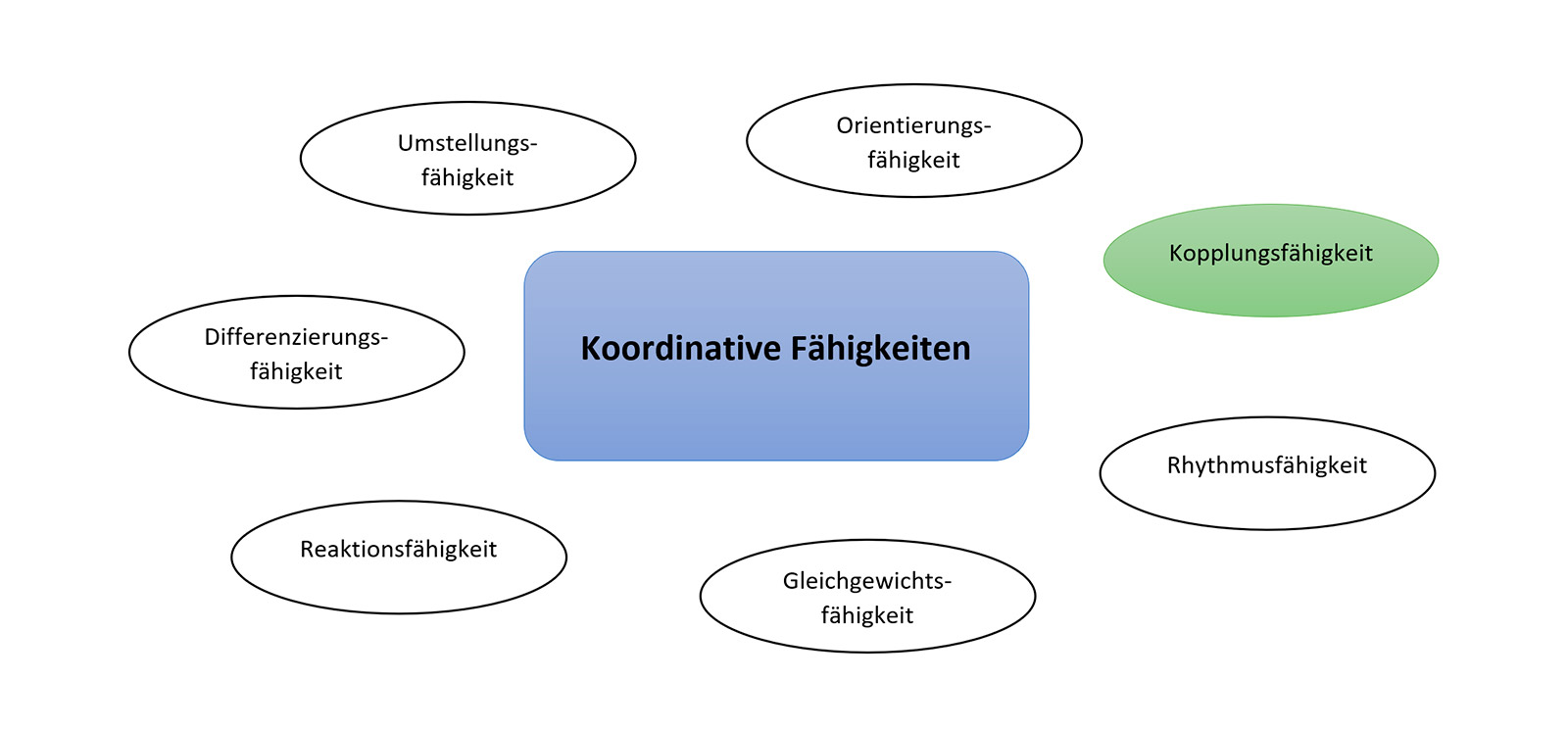 Die Kopplungsfähigkeit ist die Fähigkeit, Inhalte/Bewegungen zielorientiert, zeit- und raumbezogen zu kombinieren. Die Kopplungsfähigkeit wird folglich automatisch fast immer mit trainiert, z.B.: