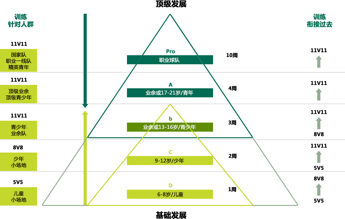 Die Abbildung zeigt die Entwicklungsphase bzw. die Ausbildungsstufen eines Fußballtrainers in China. In der Abbildung ist die D-Lizenz die niedrigste Lizenz, und die oberste Lizenz ist Pro-Lizenz (Vergleichbar mit dem Fußballlehrer bzw. der UEFA Pro in Deutschland). Faktisch gibt es in China jetzt auch ein E-Lizenz – eine Art grundlegende Lizenz unter D-Lizenz. Die E-Lizenz wird durch den Fußballverband der Provinz oder Region ausgebildet.