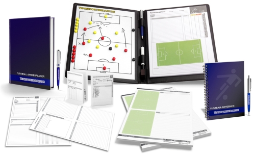 Sie erhalten ein hochwertiges Trainerset für den modernen Fussballtrainer, bestehend aus der Taktikmappe (Leder), dem Trainer Arbeitsbuch inkl. Zubehör, dem Notizbuch (80 Seiten), dem Notizblock (50 Blatt), sowie einem 20er Pack Spielbeobachtungsblätter.