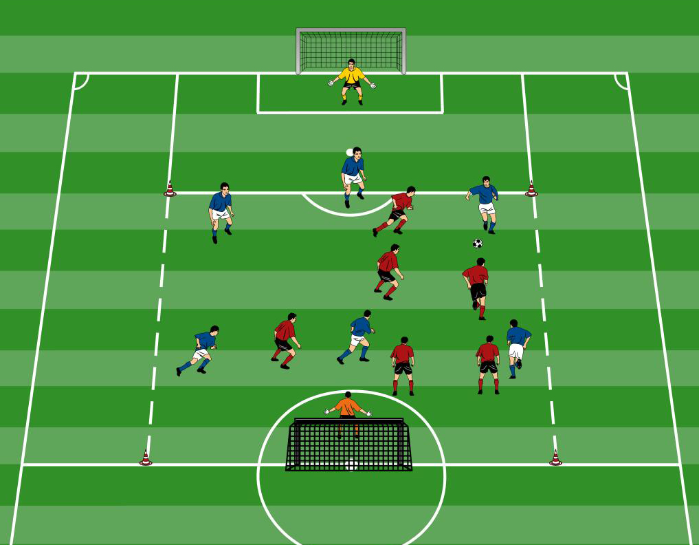• 8-gegen-8 auf zwei Tore mit Torhütern.