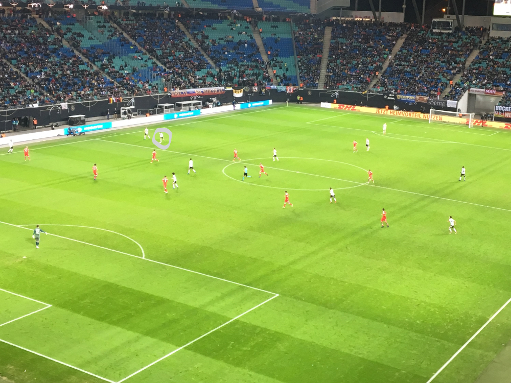 Deutschland hat mit Ball in einer 3er Kette (Rüdiger, Süle, Ginter) gespielt. Kimmich war als freier 6er unterwegs. Das Mittelfeld bestand aus den Außen Hector (links) und Kehrer (rechts), sowie zentral haben sich Sané und Havertz bewegt. Die Spitzen wurden gebildet durch Werner und Gnabry. Wobei Werner zwischen Mittelfeld und Sturm pendelte.