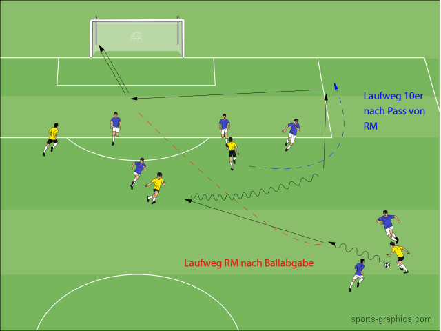 Genialer Spielzug über rechten Mittelfeldspieler