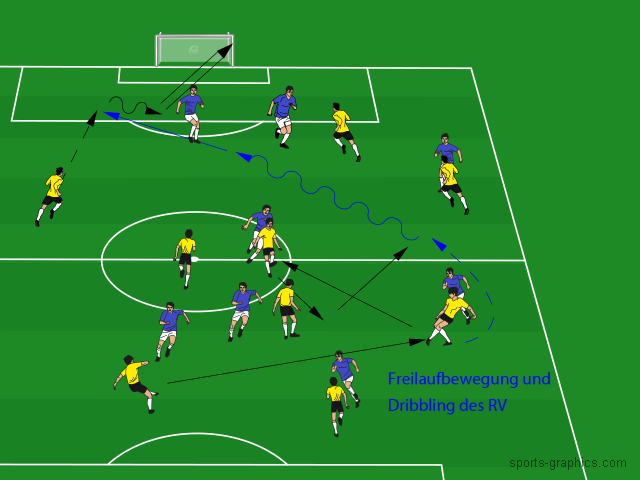 3. Treffer: Freilaufbewegung und Diagonaldribbling des Rechtsverteidigers