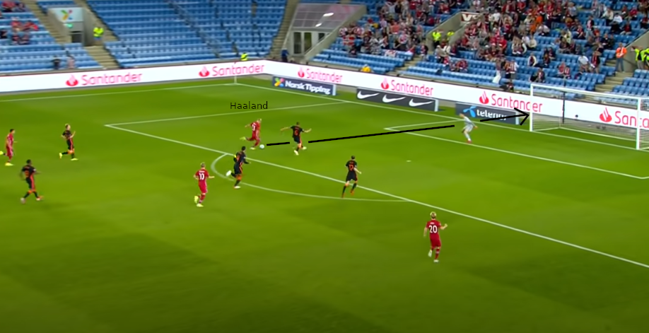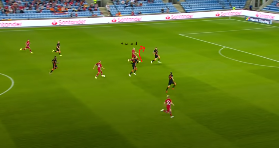 - Haaland sucht wieder den Raum im Rücken seinen Gegenspielers.