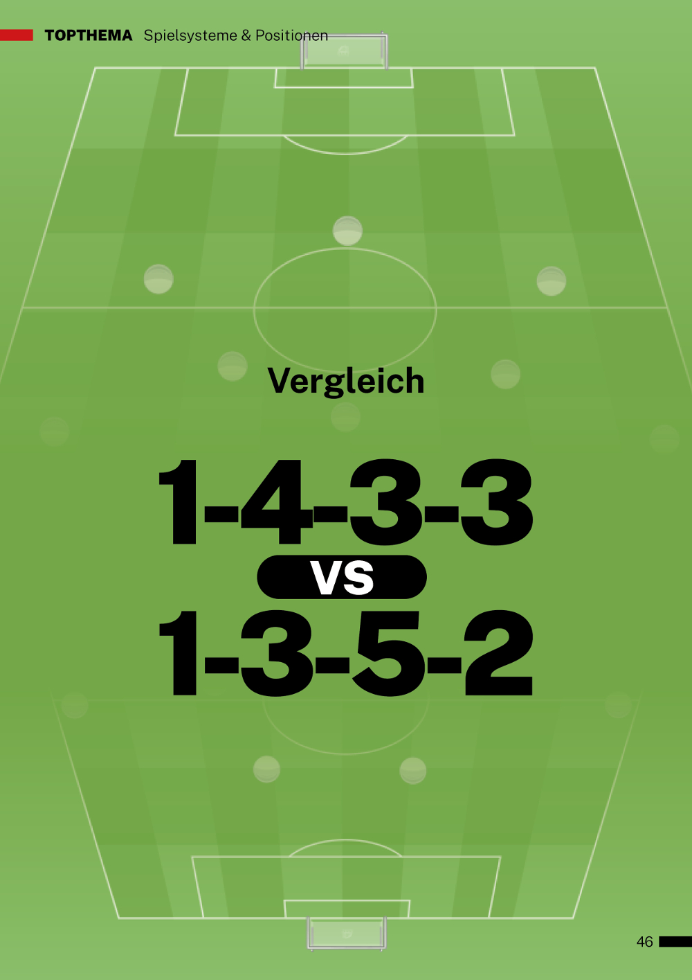 Des Weiteren stellt das Fußballtrainer-Magazin die modernen Spielsysteme 1-4-3-3 und 1-3-5-2 gegenüber:
