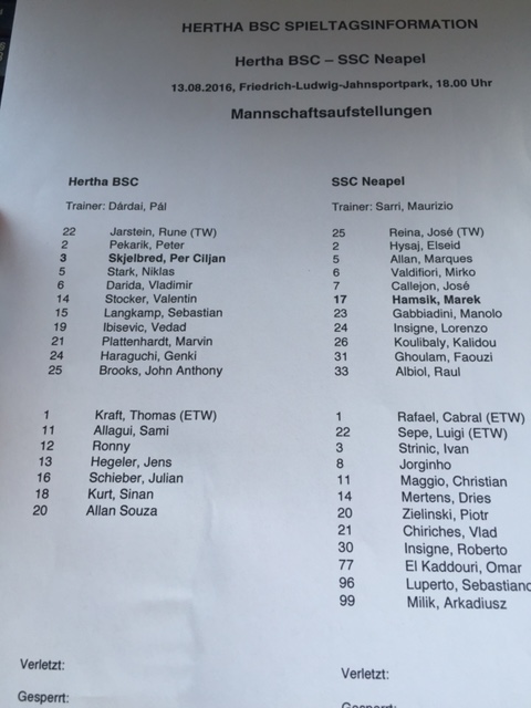 Zur Generalprobe für den Saisonstart bekam es Hertha BSC mit einem echten Hochkaräter zu tun. Der italienische Vize-Meister und Champions League-Teilnehmer SSC Neapel gastierte im Friedrich-Ludwig-Jahnsportpark. Der Bundesligist war dem starken Gegner eine Halbzeit lang gewachsen, in den zweiten 45 Minuten aber völlig chancenlos.