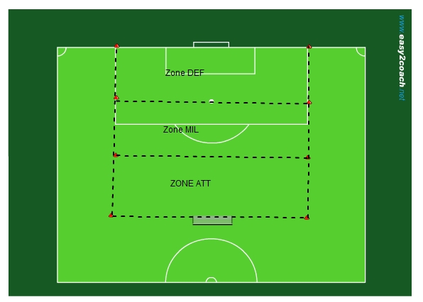 Zwei der neutralen Spieler standen einander gegenüber an den kurzen Seiten des Feldes, der dritte war in der Mitte anspielbar. Dieser durfte sich im Feld frei mitbewegen, die Spieler an der kurzen Seitenlinie bewegten sich nur an dieser auf und ab. Ihre Aufgabe bestand darin, immer das Team, das in Ballbesitz war, zu unterstützen. Dadurch entstand ein Überzahlspiel dieses Teams.