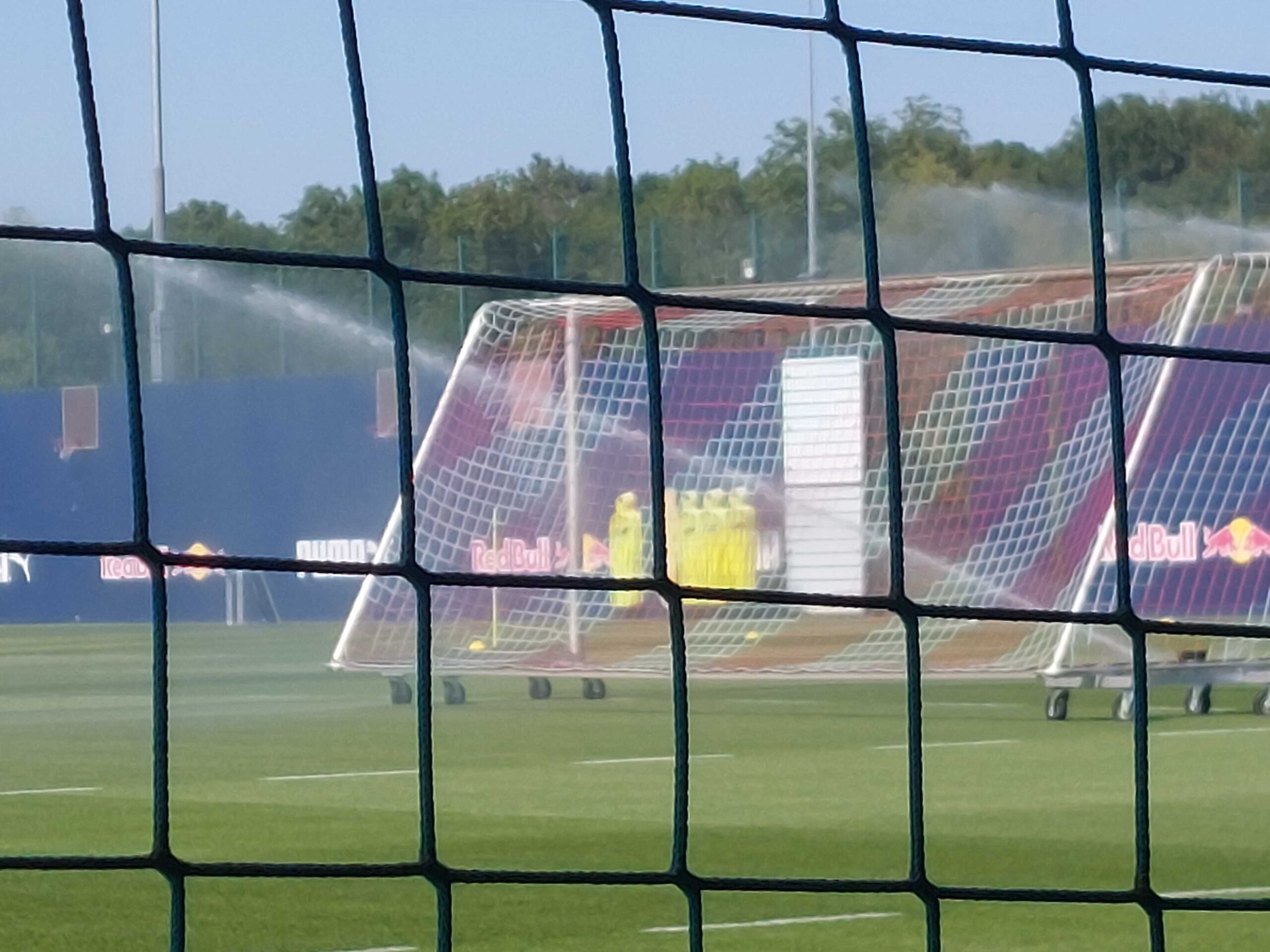 Nun wurde das Feld vergrößert, auf dreißig Meter Länge und zwanzig Meter Breite. Die Übung blieb gleich. Es durften alle Spieler mitspielen, und zwei Torhüter wurden hinzugeholt, Gulásci und Neuzugang Vandevoordt, der auch Ambitionen haben dürfte, Nummer eins zu werden. Die beiden Torhüter bekamen ebenfalls gelbe Leibchen, bewegten sich aber vor allem auf der Grundlinie. Einmal unterbrach Rose die Übung, um ausführlich mit Baumgartner zu reden, der Gestik nach zu urteilen über sein Freilaufverhalten. Möglicherweise Indiz dafür, dass nach Baumgartners toller EM mit Österreich und Olmos Weggang von ihm erwartet wird, in dieser Saison den nächsten Entwicklungsschrift zu machen.