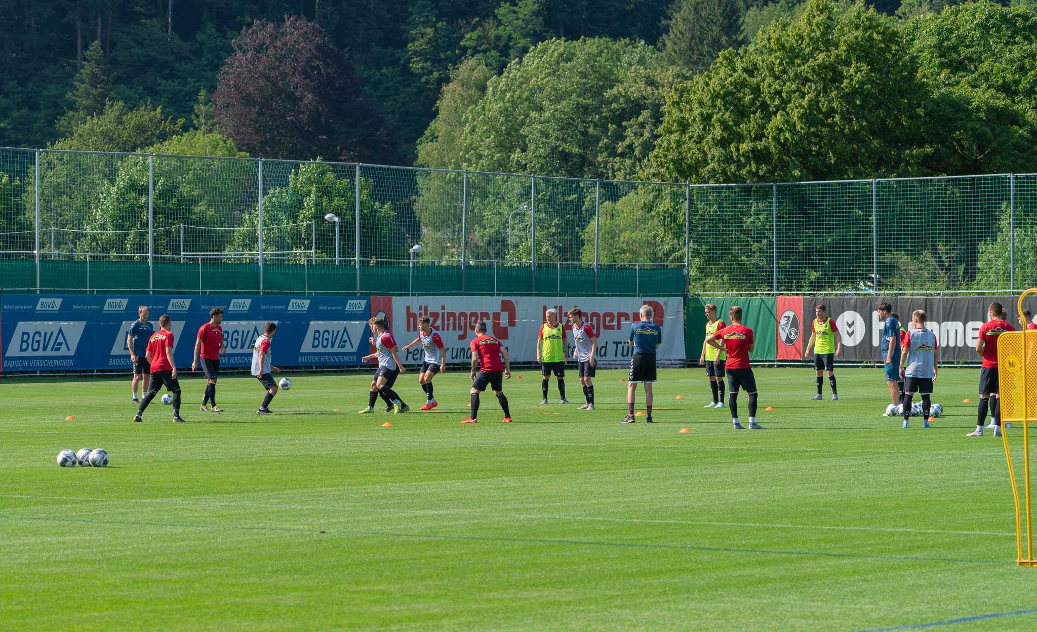 Christian Streich und seine Trainerteam kamen zu dieser Trainingseinheit in der Freiburger Mittagshitze mit 24 Spielern auf den Platz. Mit dabei waren auch die Neuzugänge Kwon und Jeong. Die drei U21-EM Fahrer waren derweil noch im Sonderurlaub.