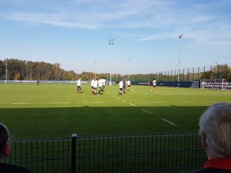 Noch vor der Erwärmungsrunde spielten die neun Spieler, zu denen auch Timo Werner gehörte, das Spiel „2 Kontakte“.Die geringe Spieleranzahl forderte vom Trainerteam ein hohes Maß an Kreation. Diese Aufgabe meisterten die Trainer mit Bravour, denn das Training war optimal auf die kleine Anzahl der Spieler angepasst.