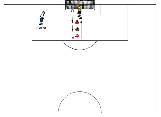 Übungsschwerpunkt: Flankenverwertung, Kombinationsspiel und Verschieben Intensität: ca. 20 Minuten Übungsablauf: Jeweils 3 Spieler stehen – wie in der Grafik zu sehen – in einer Hälfte des Feldes. An der Mittellinie stehen 4 Abwehrs...