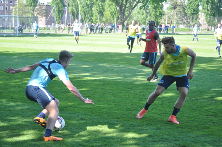 Wie auch bei allen anderen Übungen im Fussballtraining gibt der Trainer bei Fehlern Verbesserungsvorschläge, wenn die Akteure sich nicht wie gewünscht verhalten.